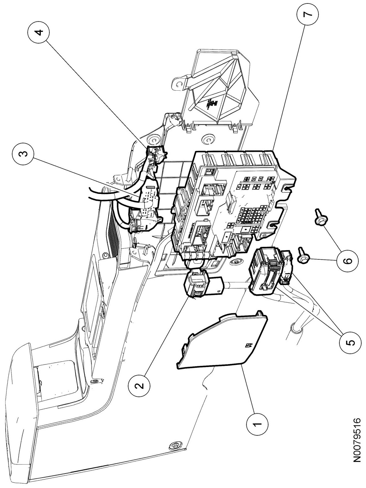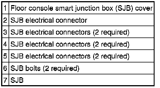 NOTE:Prior to the replacement of the module, it is necessary to upload the module configuration information to a scan tool. This information must be downloaded into the new smart junction box (SJB) after installation. See Module Configuration. In the event that As-Built data is required (SJB will not communicate), all remote keyless entry (RKE) devices must be programmed to the new SJB. A minimum of 2 RKE devices are necessary to complete the configuration and turn off the flashing interior lights. The tire pressure monitoring system (TPMS) functionality is integral to the SJB.