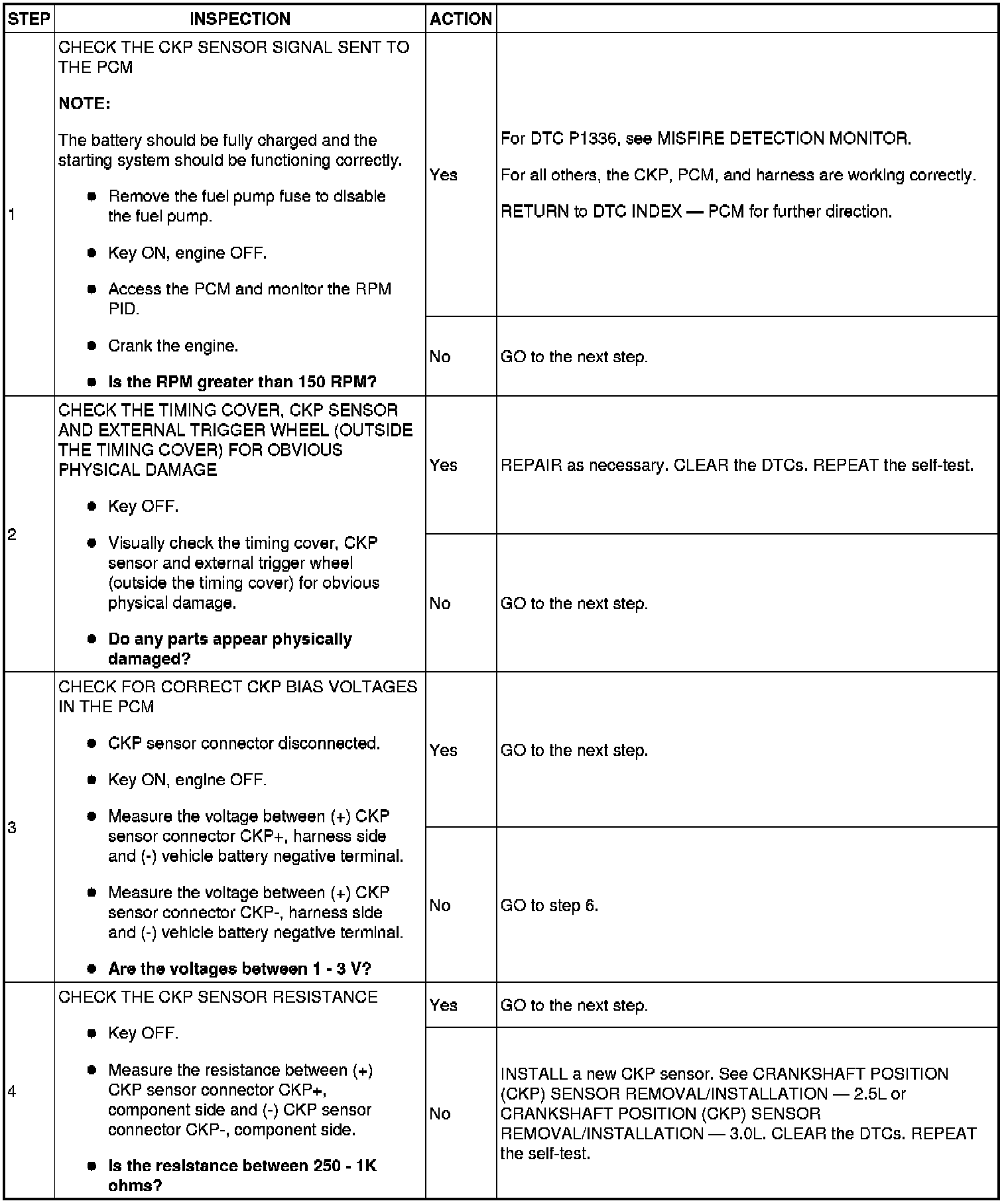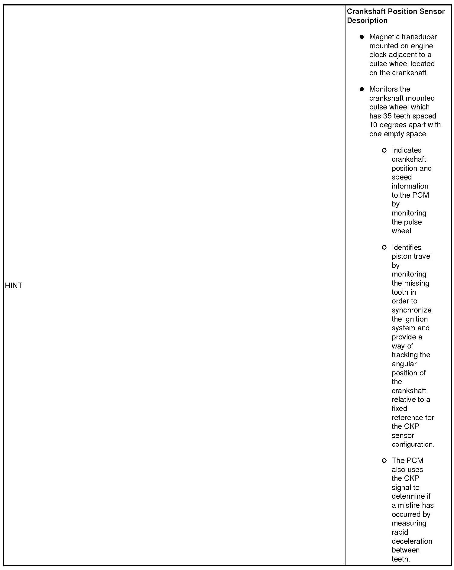 CRANKSHAFT POSITION (CKP) SENSOR MALFUNCTION