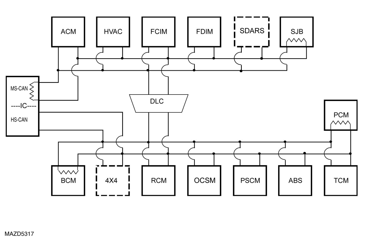 Vehicle communication utilizes controller area network (CAN) communications. The CAN is used for many modules to communicate with each other on a common network. CAN in-vehicle networking is a method for transferring data among distributed electronic modules via a serial data bus.Without serial networking, intermodule communication requires dedicated, point to point wiring resulting in bulky, expensive, complex, and difficult to install wiring harnesses. Applying a serial data network reduces the number of wires, combining the signals on a single network. Information is sent to the individual control modules that control each function.The vehicle has 2 module communication networks: