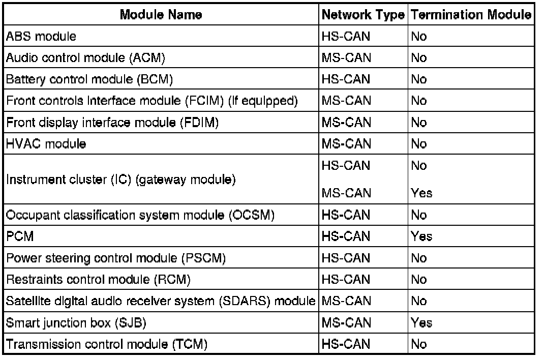 The instrument cluster (IC) is the gateway module, translating HS-CAN to MS-CAN and vice versa. This information allows a message to be distributed throughout both networks. The IC is the only module on this vehicle that has this ability.