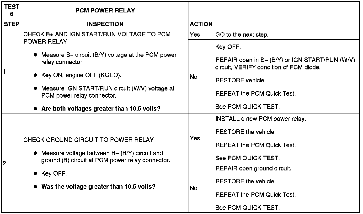 TEST 6: PCM POWER RELAY