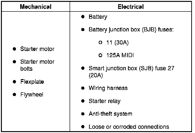 NOTE:The anti-theft system must be functioning correctly before a logical starting system diagnosis can be carried out. Address anti-theft system concerns before continuing.