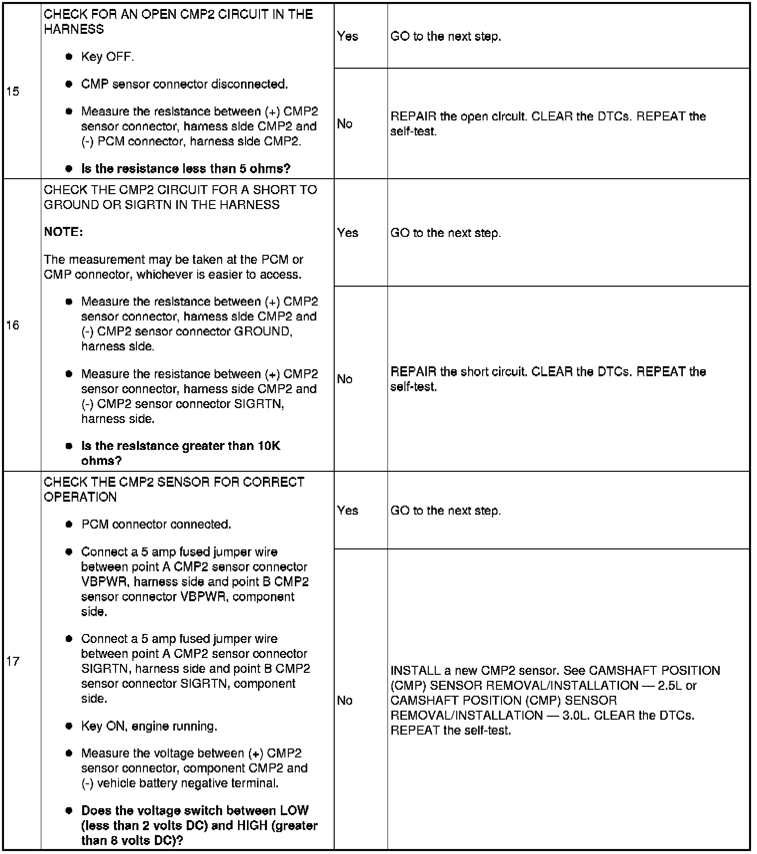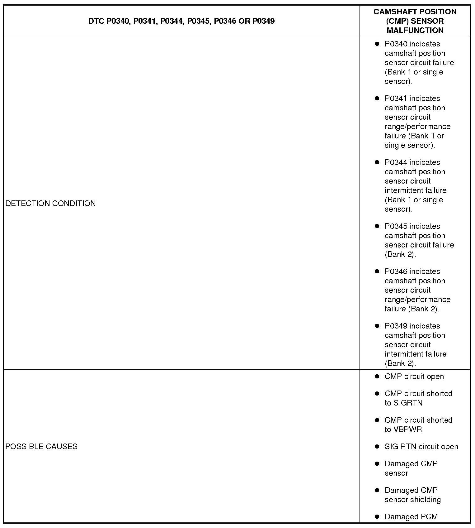 CAMSHAFT POSITION (CMP) SENSOR MALFUNCTION