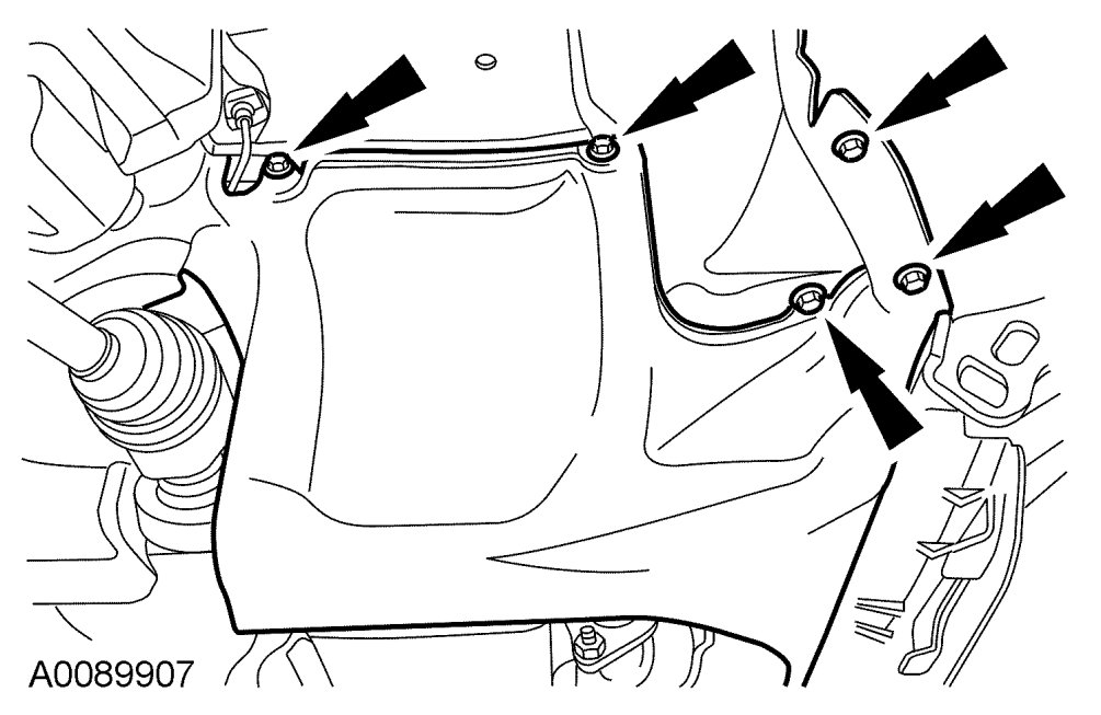 2. Remove the 5 bolts, the pin-type retainer (not shown) and the RH splash shield.