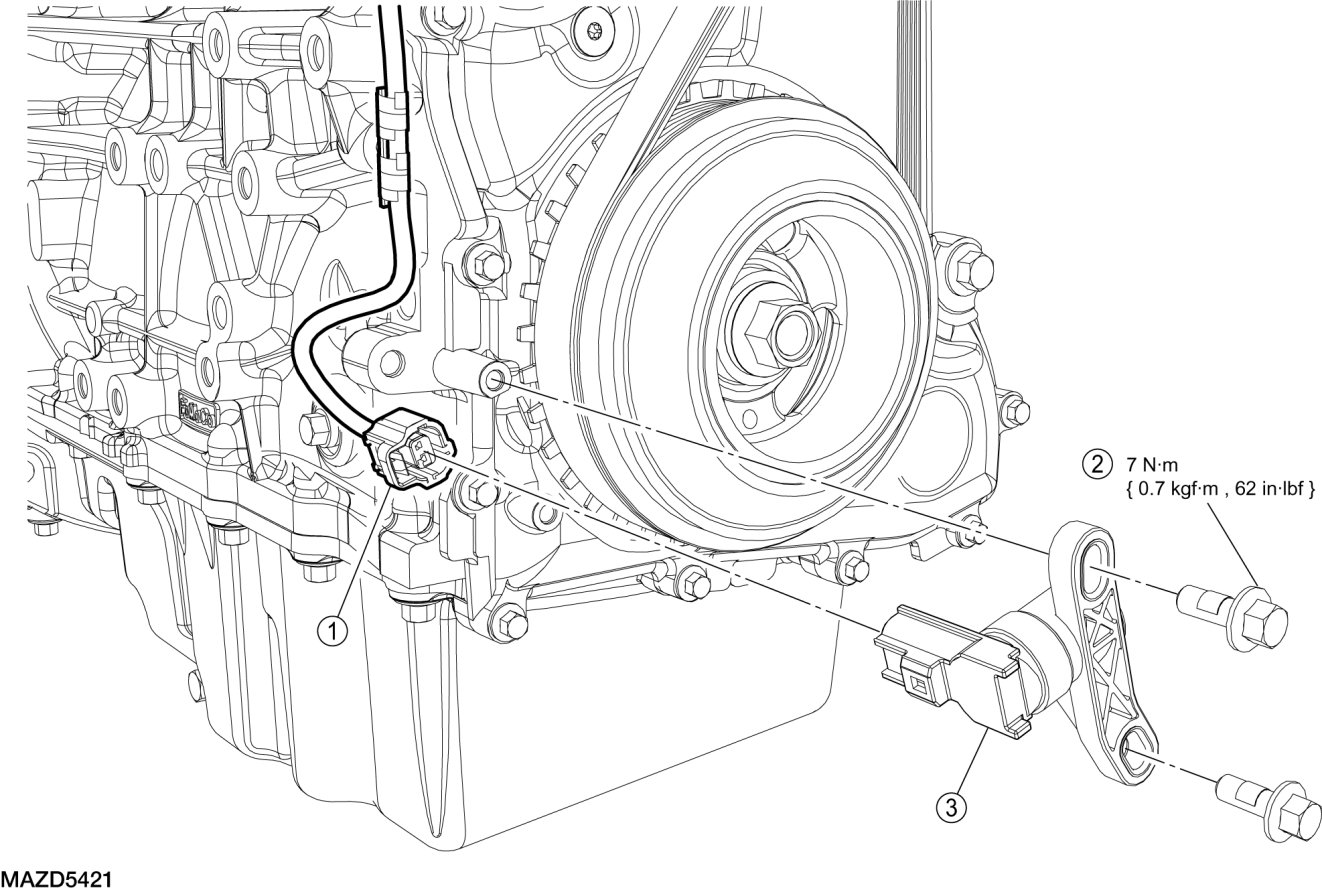 2. Install the CKP sensor and the 2 bolts.