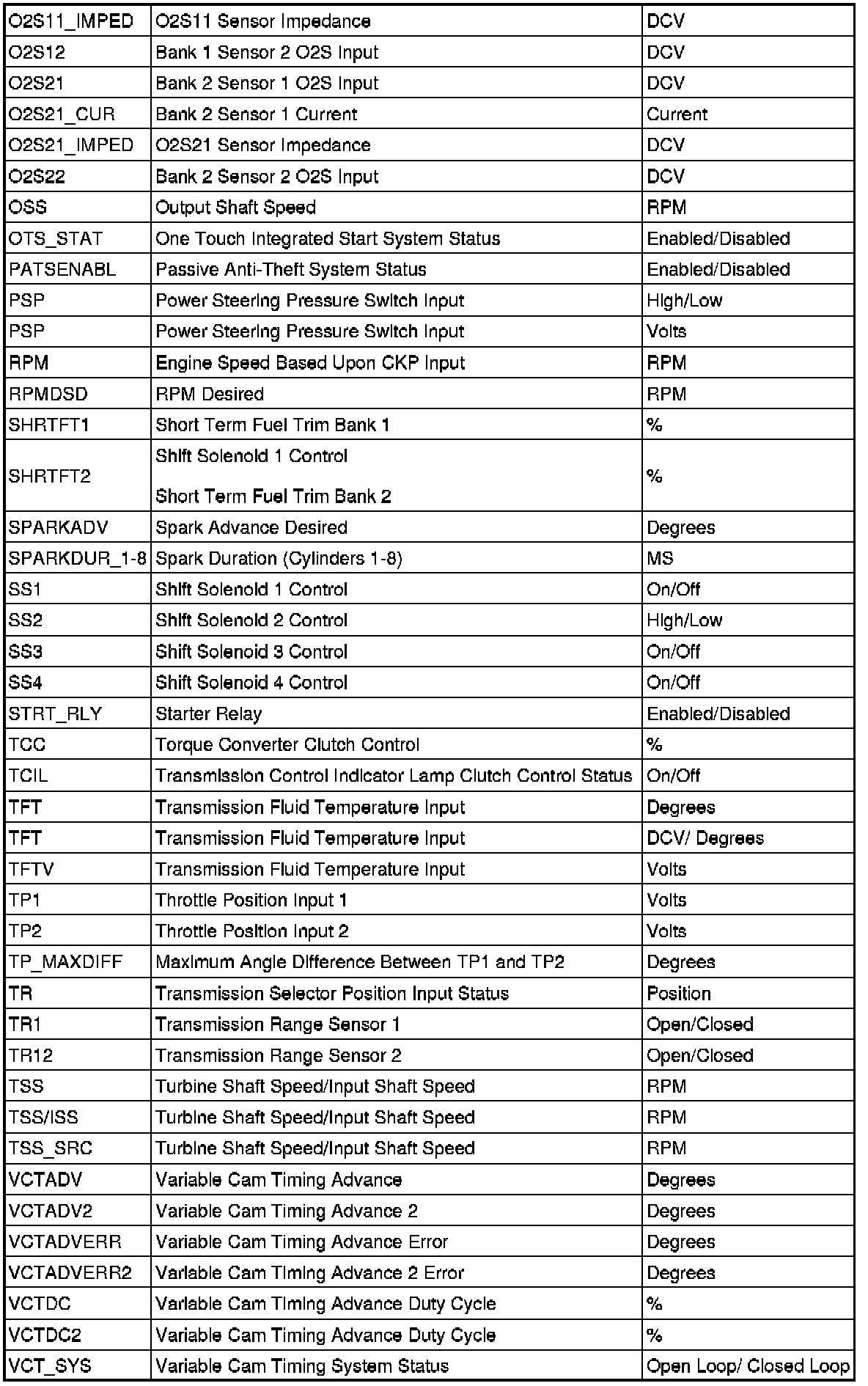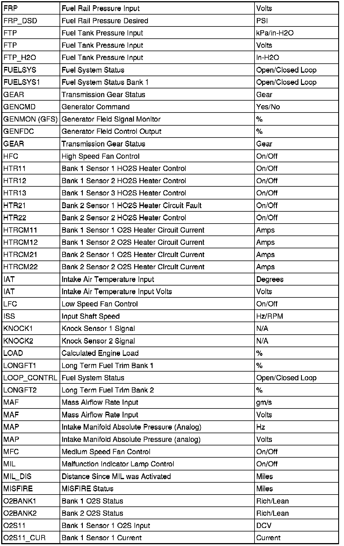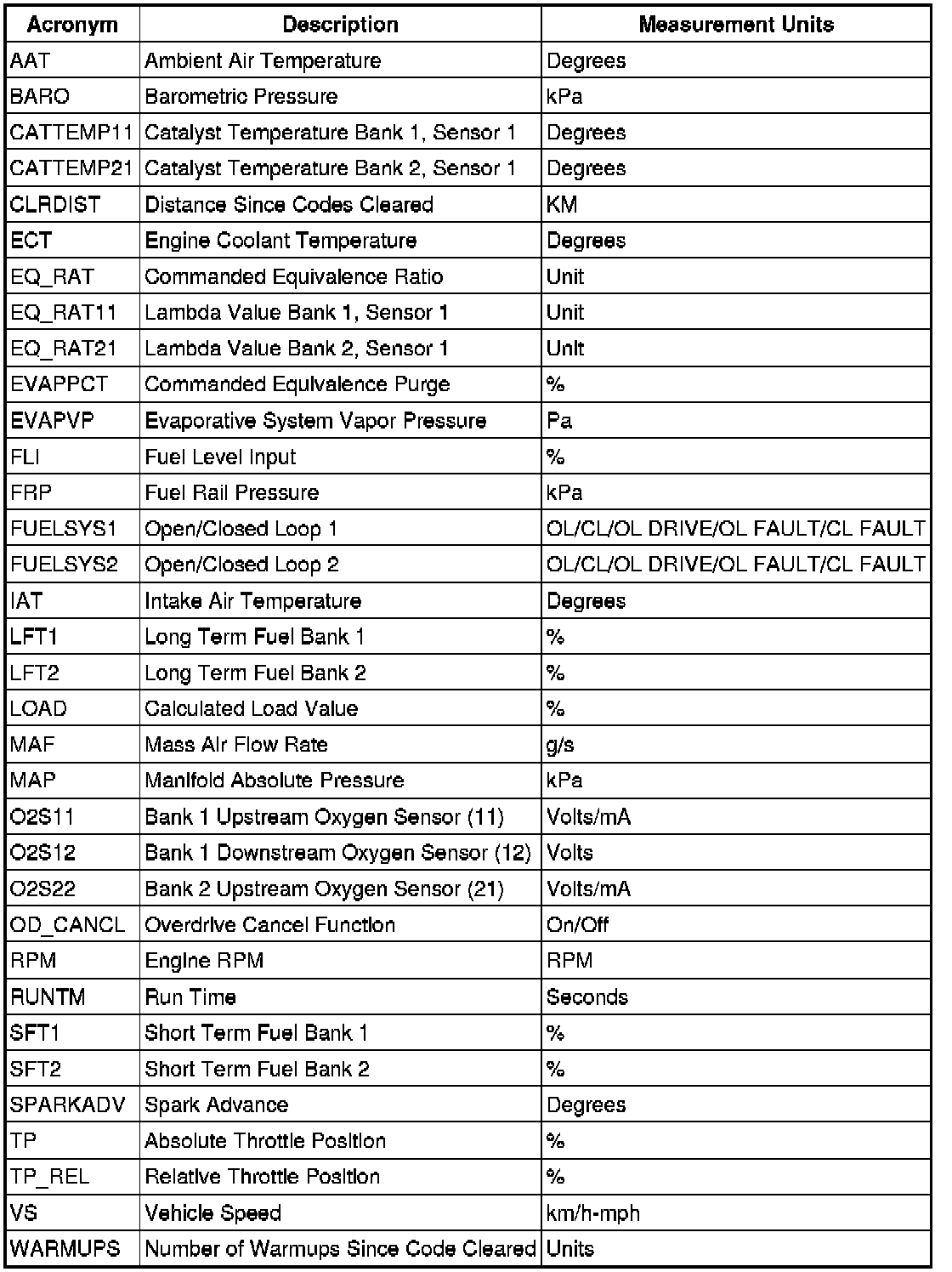 NOTE:This is not a complete list of Mazda PIDs available. This is a list of Mazda PIDs for engine control system troubleshooting.