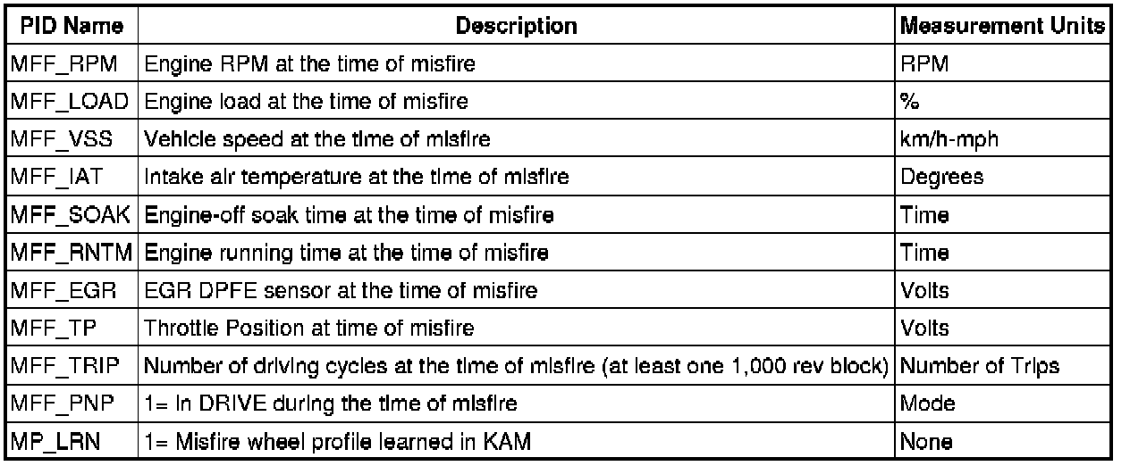 NOTE:MFF PIDs are supported on all vehicles, but may not be available on all scan tools because enhanced PID access may vary by scan tool manufacturer. Misfire Freeze-Frame PIDs