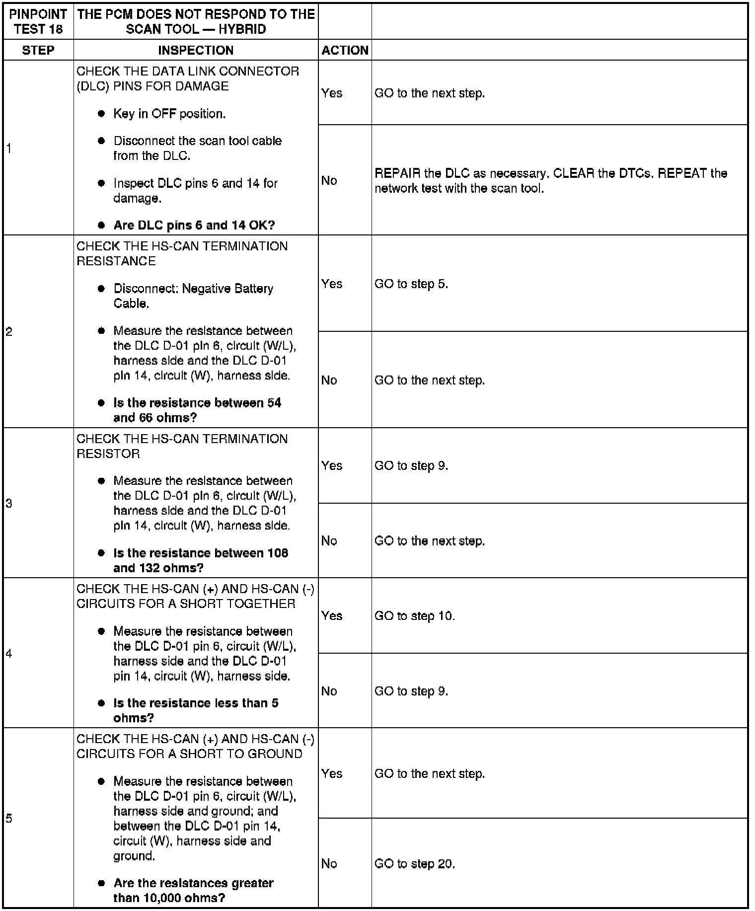 PINPOINT TEST 18: THE PCM DOES NOT RESPOND TO THE SCAN TOOL - HYBRID