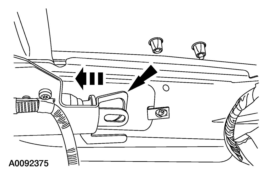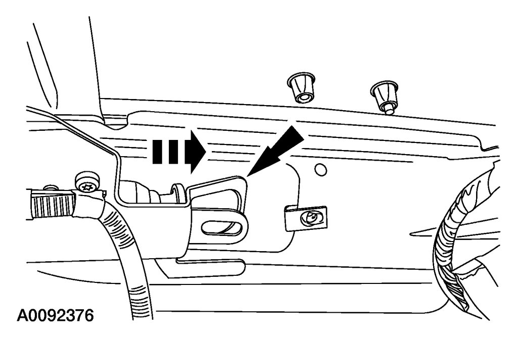 NOTE:If equipped with a moonroof and/or rear window wiper assembly, do not pinch the front moonroof drain hose and/or rear window washer solvent hose.