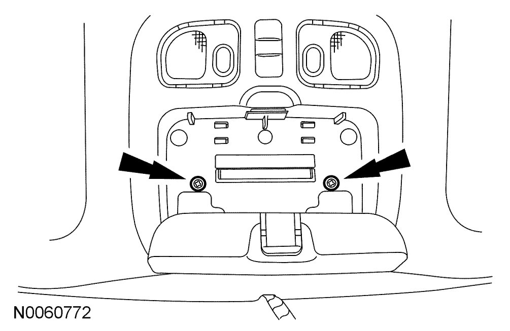 15. Position the overhead console and install the 2 overhead console screws.
