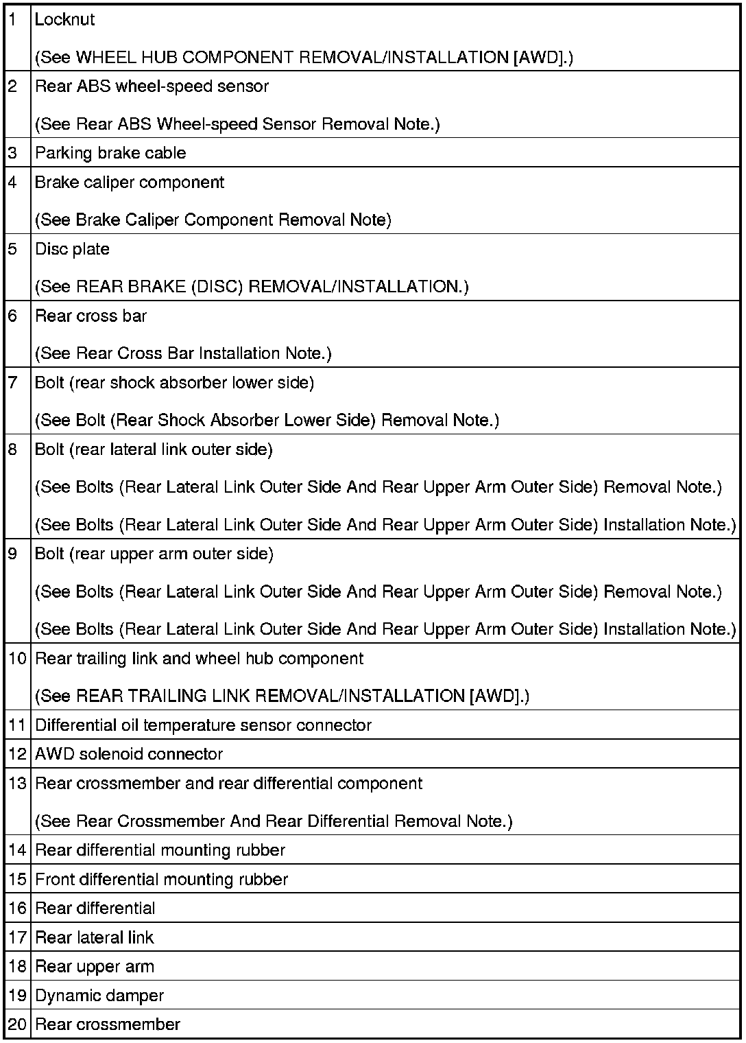 REAR CROSSMEMBER REMOVAL/INSTALLATION [AWD]