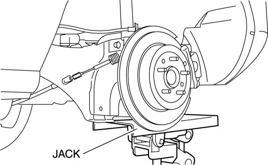 - Performing the following procedures without first removing the ABS wheel-speed sensor may possibly cause an open circuit in the harness if it is pulled by mistake. Before performing the following procedures, remove the ABS wheel-speed sensor (axle side) and fix it to an appropriate place where the sensor will not be pulled by mistake while servicing the vehicle.
