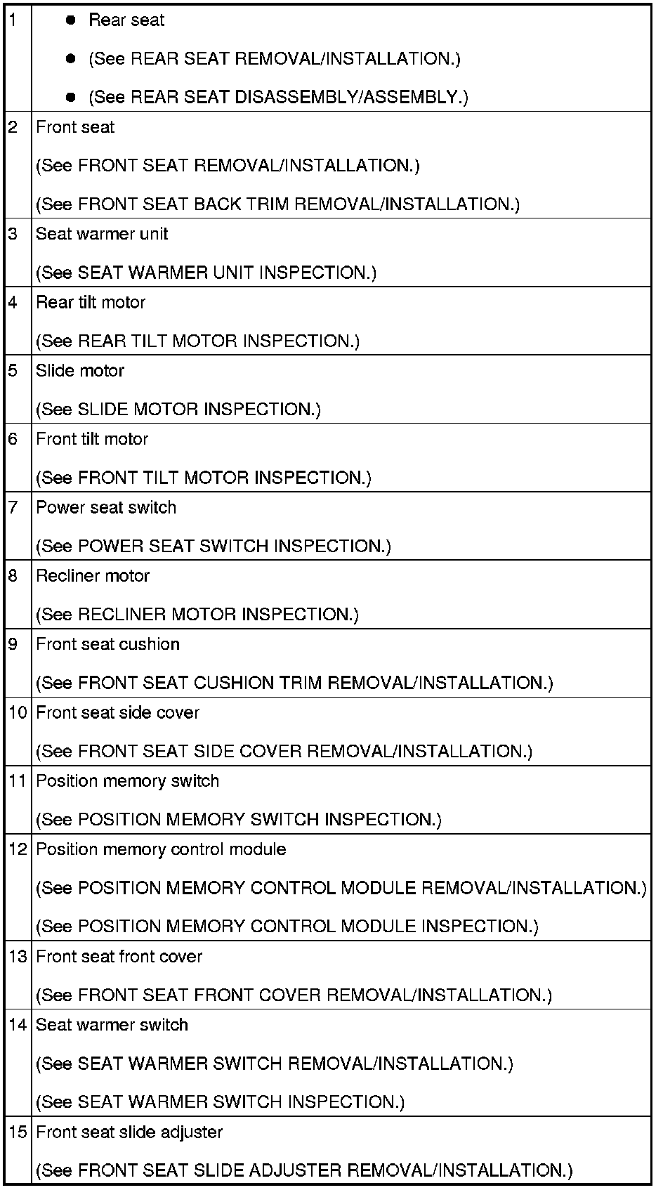 SEATS LOCATION INDEX