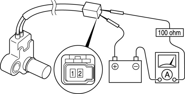 1. Connect the VSS terminal 2 to the battery positive terminal, connect the battery negative terminal to VSS terminal 1 through an ammeter set to a resistance of 100 ohm.