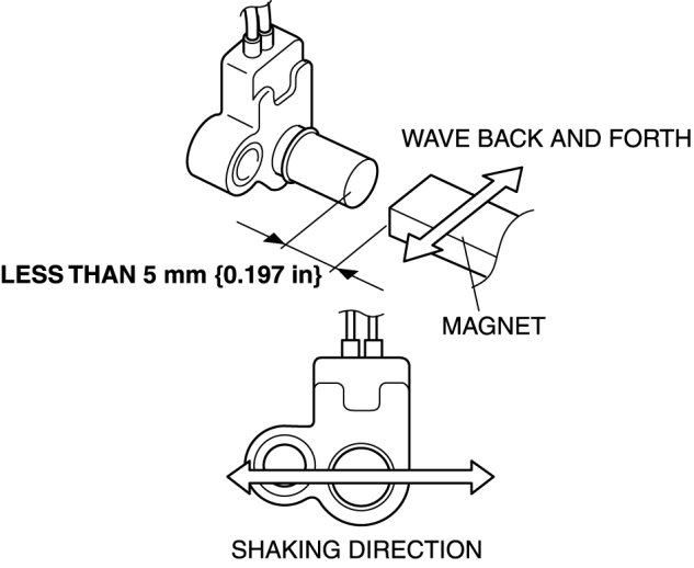 2. Measure the current while waving a magnet back and forth over the top of the VSS (less than 5 mm {0.197 in}).