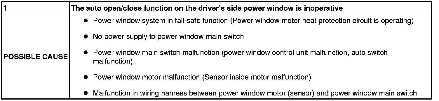 No. 1 The Auto Open/Close Function On The Driver's Side Power Window Is Inoperative
