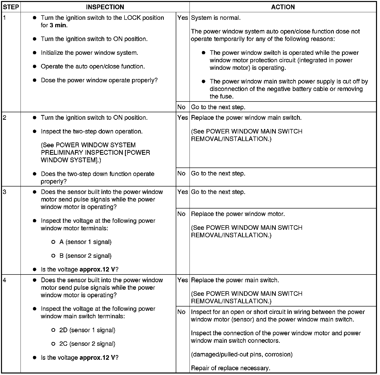 No.1 THE AUTO OPEN/CLOSE FUNCTION ON THE DRIVER'S SIDE POWER WINDOW IS INOPERATIVE [POWER WINDOW SYSTEM]