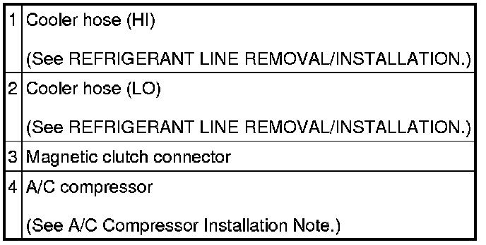 5. Remove in the order indicated in the table. Do not allow compressor oil to spill.