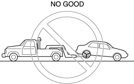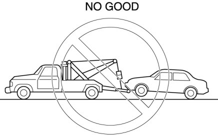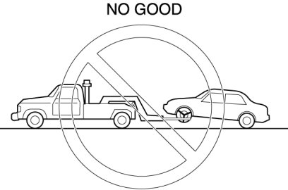 - Don't tow the vehicle pointed backward with driving wheels on the ground. This may cause internal damage to the transaxle.