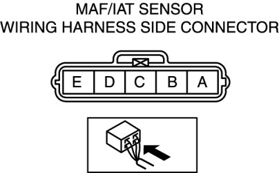 2. Measure the resistance between the MAF/IAT sensor terminals D and E using a tester.