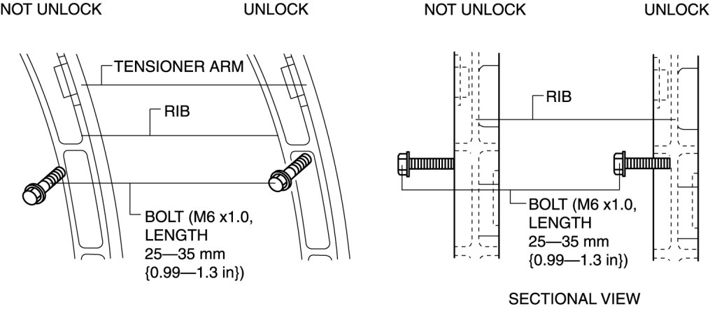 - If the tensioner arm cannot be secured, return the bolt to its original position and repeat the procedure from Step 3.