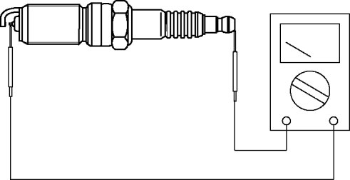 1. Measure the resistance of the spark plug using a tester as shown in the figure.