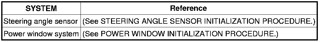 - Perform the following system initialization after disconnecting the negative battery cable.