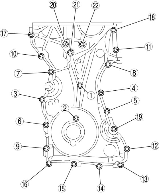 Tighten the engine front cover installation bolts in the order shown in the figure.