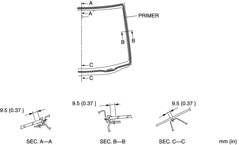 2. Clean and degrease an approx. 50 mm {1.97 in} wide strip along the perimeter of the windshield.