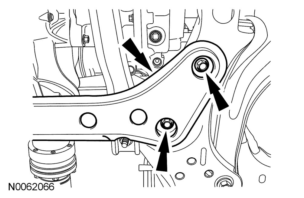 NOTE:When installing the front subframe rear bolts, make sure both of the front subframe rear bolts are fully engaged in their cage nuts before tightening to specification.