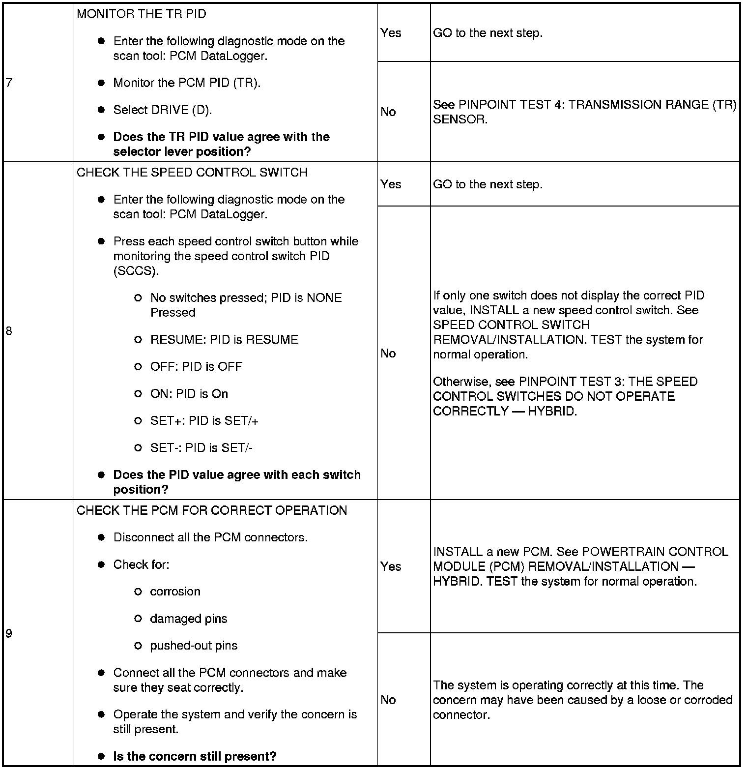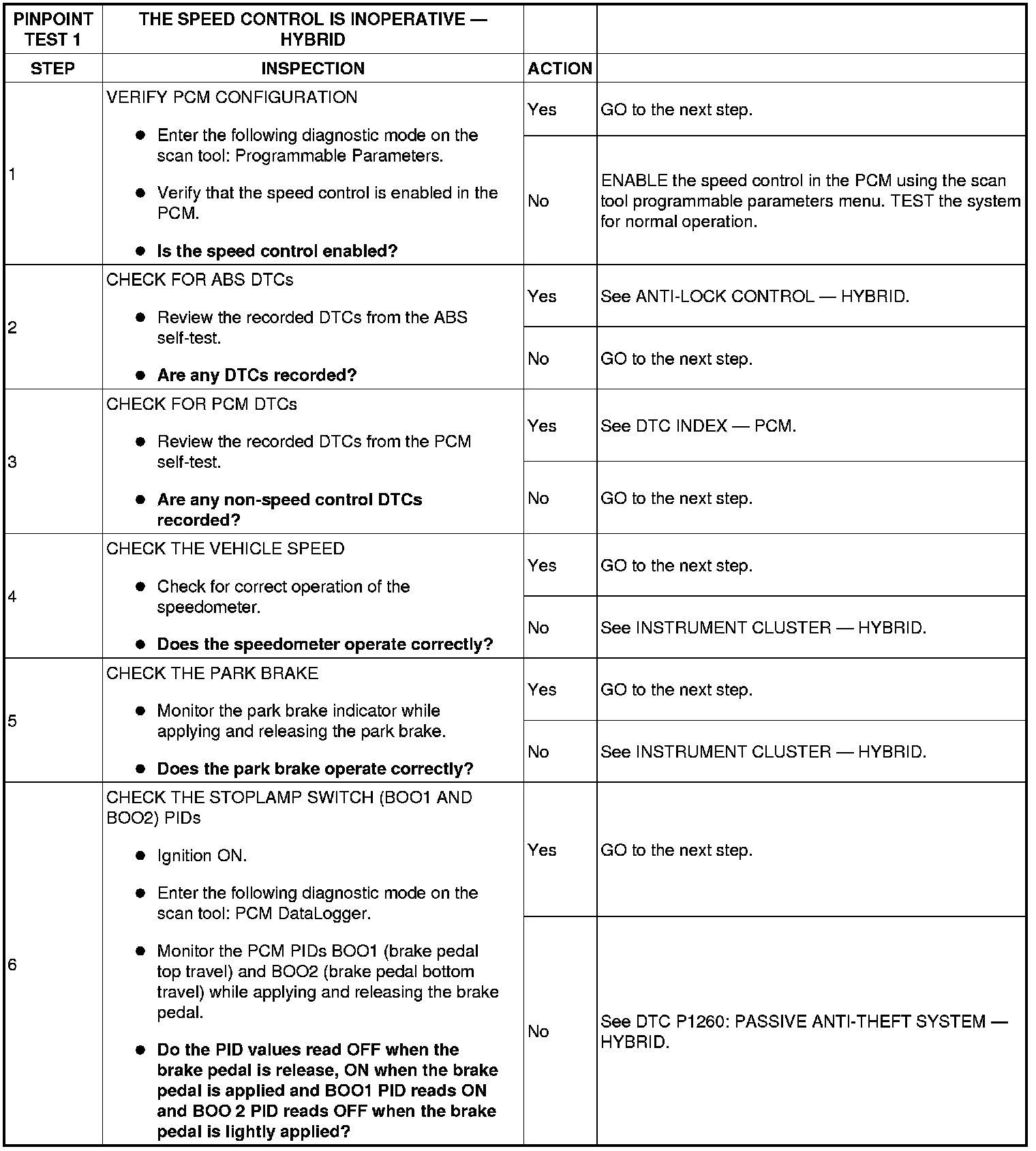 PINPOINT TEST 1: THE SPEED CONTROL IS INOPERATIVE - HYBRID