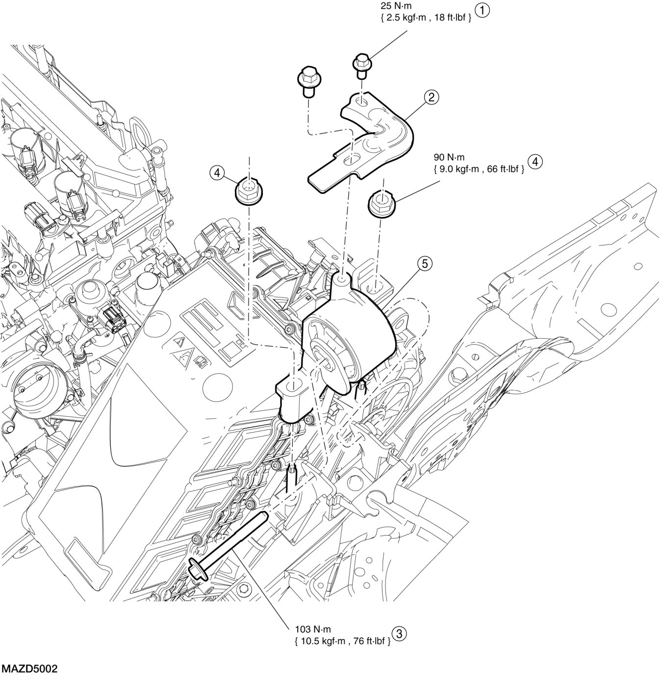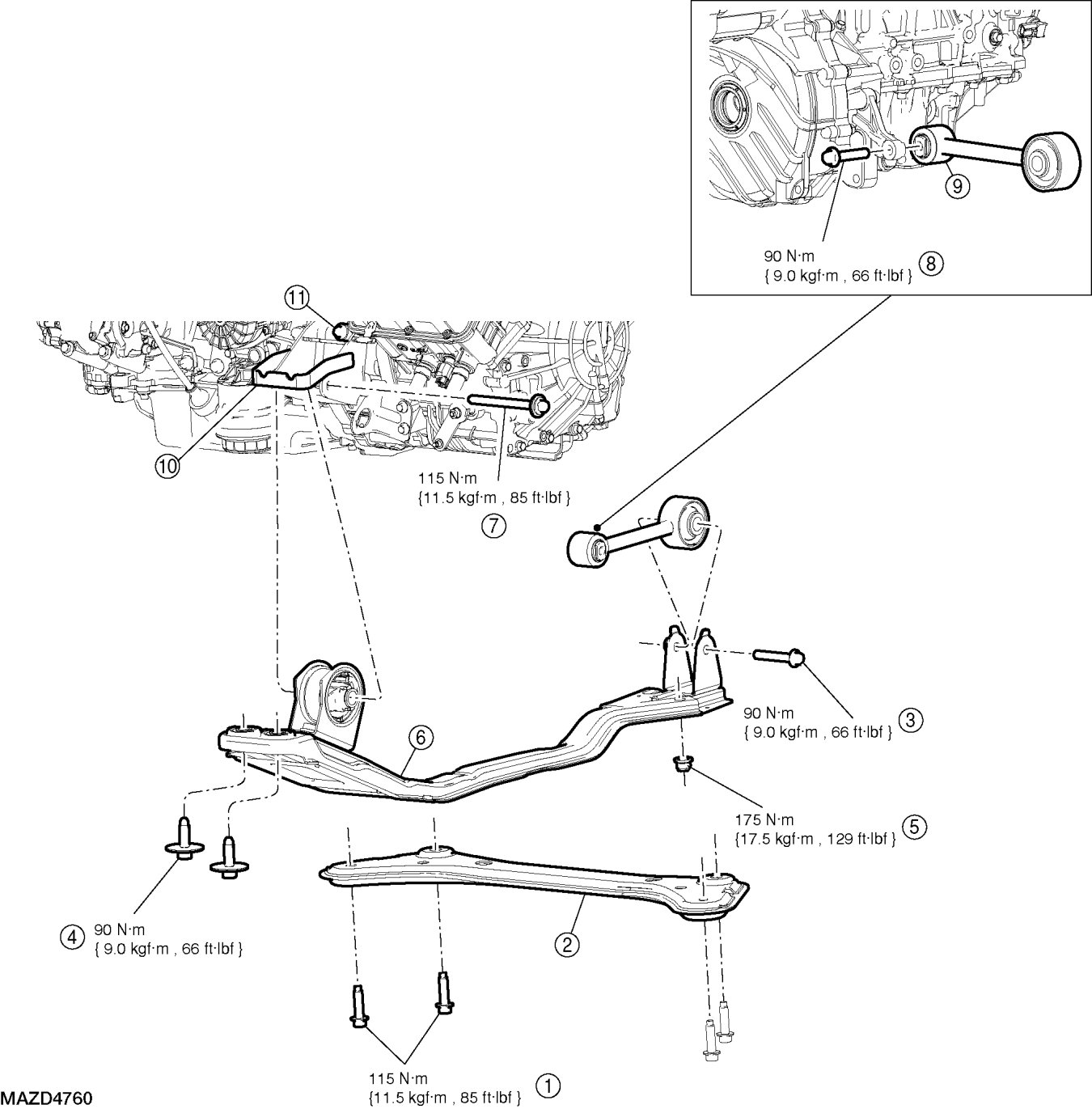 TRANSAXLE SUPPORT INSULATOR AND RETAINER EXPLODED VIEW - HYBRID