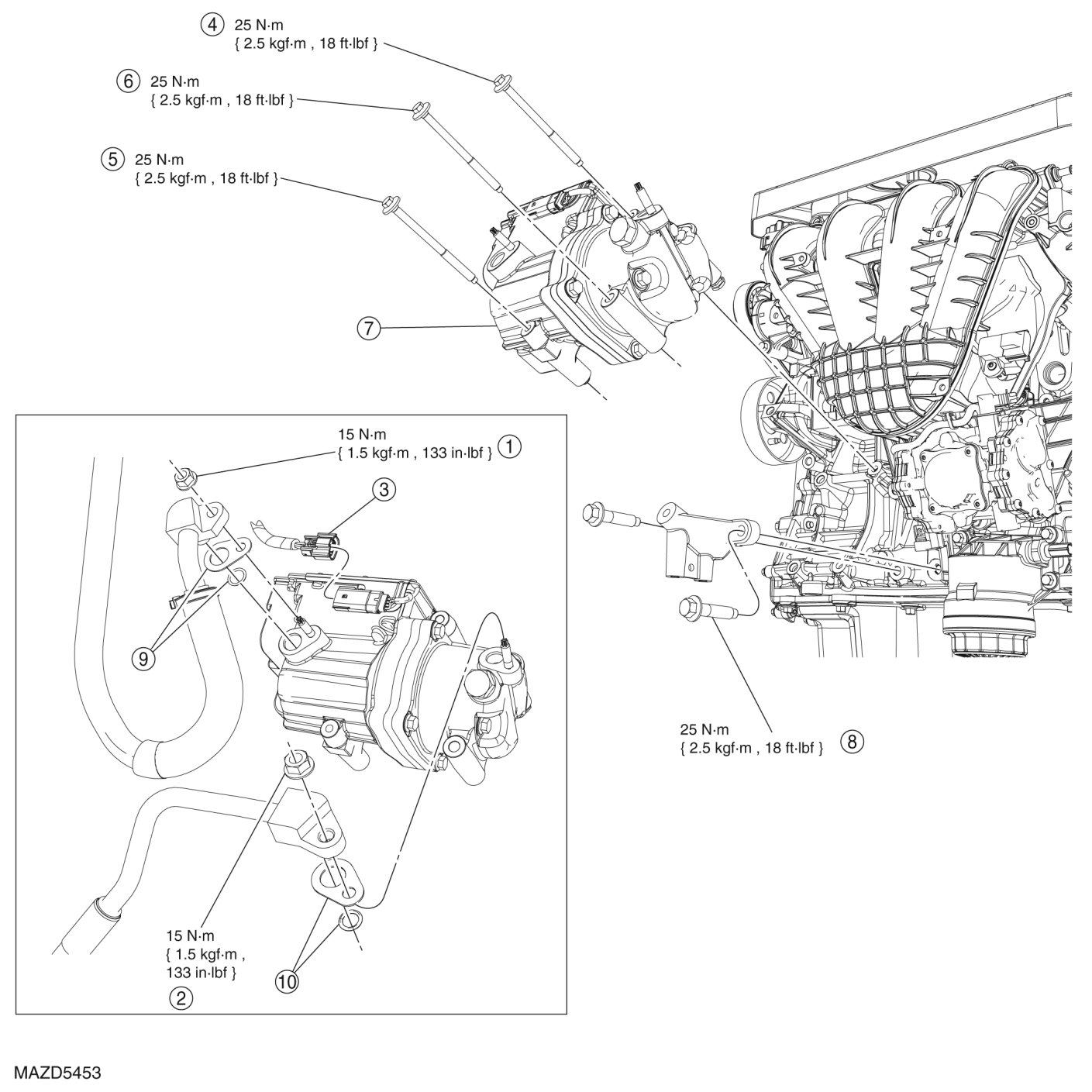 - To install, tighten to 25 Nm {2.5 kgf-m, 18 ft-lbf}.