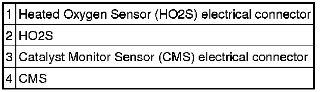 2. Disconnect the heated oxygen sensor (HO2S) and the catalyst monitor sensor (CMS) electrical connectors.