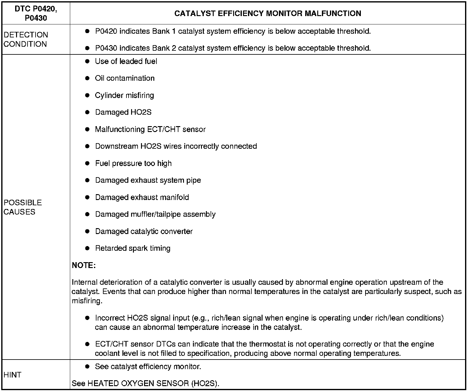 Catalyst Efficiency Monitor Malfunction