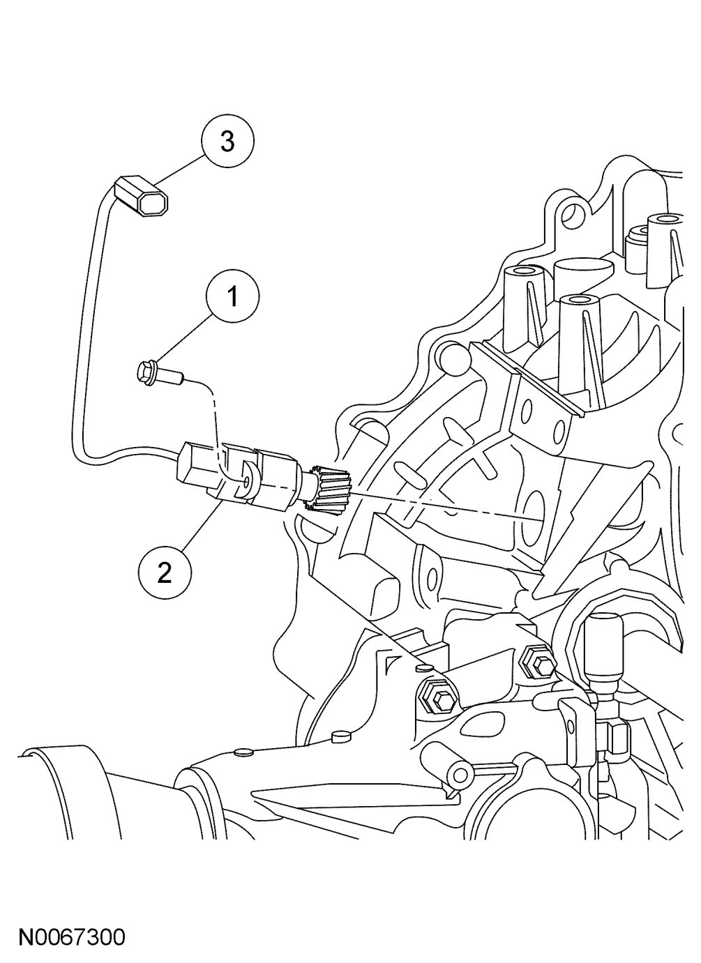 NOTE:The electrical connector and the vehicle speed sensor (VSS) are accessed from the top of the transaxle.
