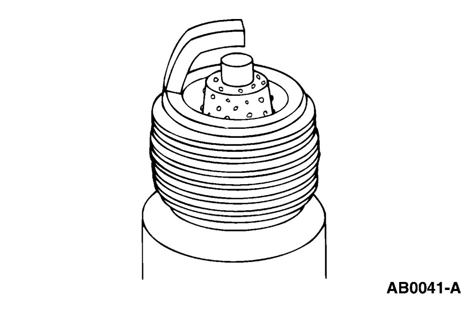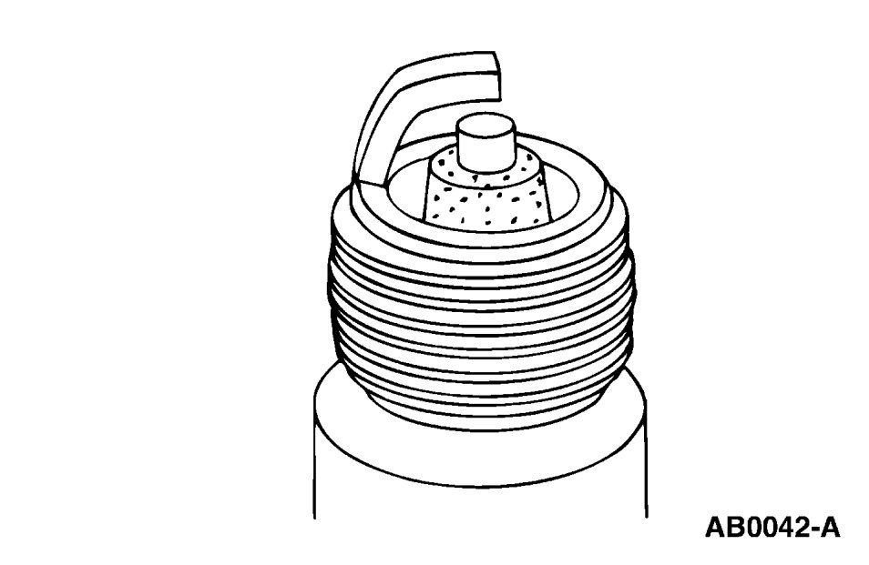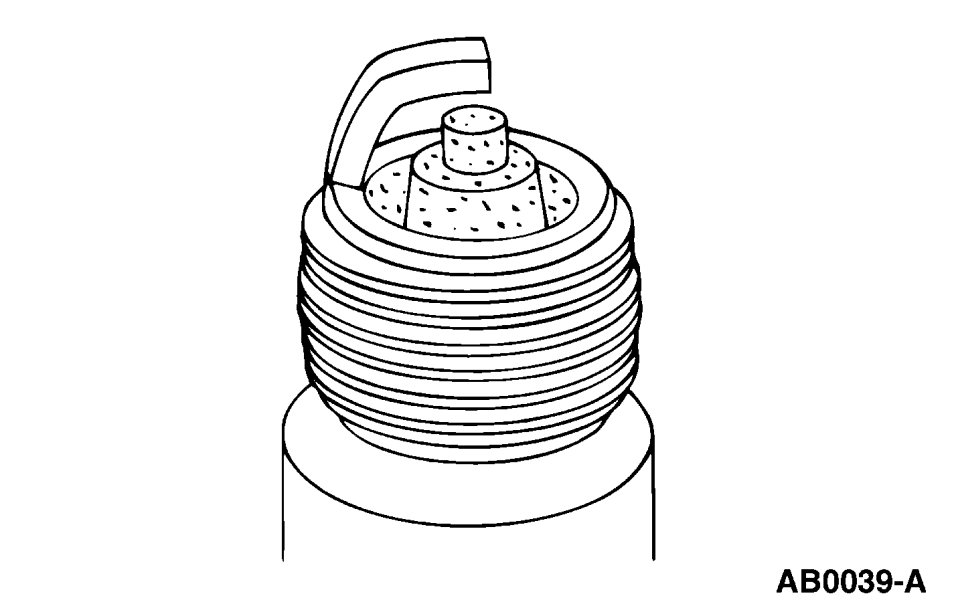 3. Inspect for carbon fouling. Look for black, dry, fluffy carbon deposits on the insulator tips, exposed shell surfaces and electrodes, caused by a spark plug with an incorrect heat range, dirty air cleaner, too rich a fuel mixture or excessive idling.