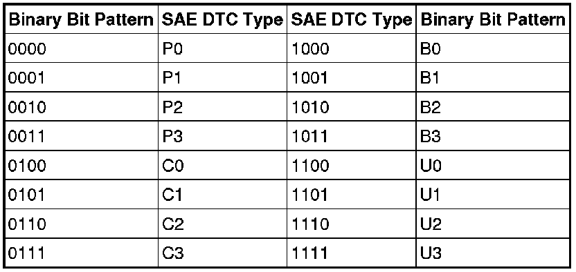 A list of failure-type bytes is defined by SAE J2012 but is not described here because the PCM does not use the failure-type byte.