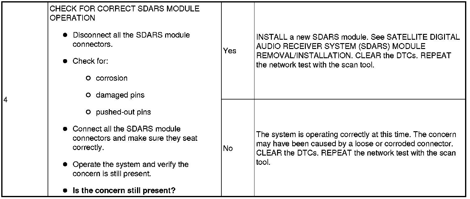 Pinpoint Test 13: The Satellite Digital Audio Receiver System (SDARS) Module Does Not Respond To The Scan Tool