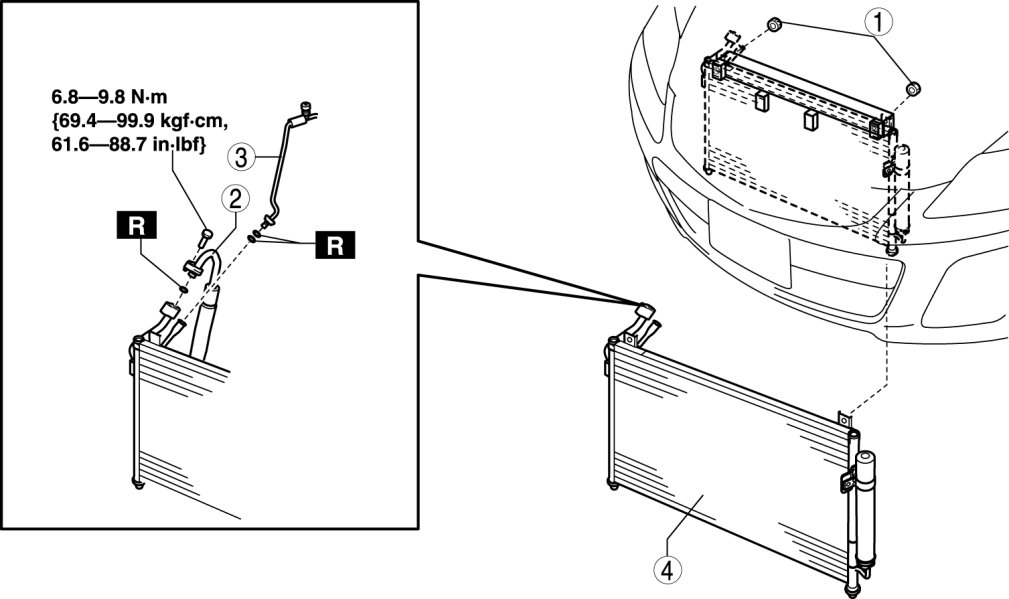 - If moisture or foreign material enters the refrigeration cycle, cooling ability will be lowered and abnormal noise will occur. Always immediately plug all open fittings after removing any refrigeration cycle parts to keep moisture or foreign material out of the cycle.
