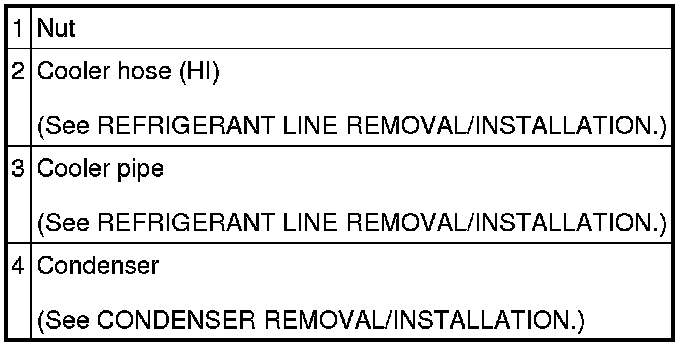 8. Remove in the order indicated in the table. Do not allow compressor oil to spill.