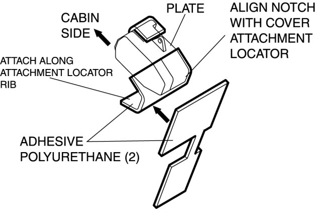 1. Attach the adhesive polyurethane (2) as shown in the figure.