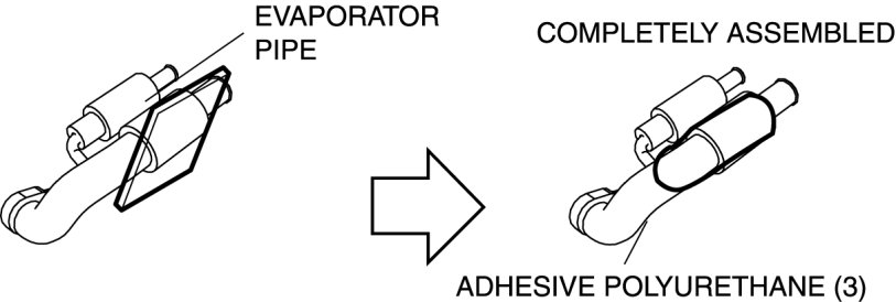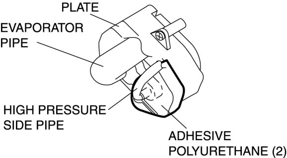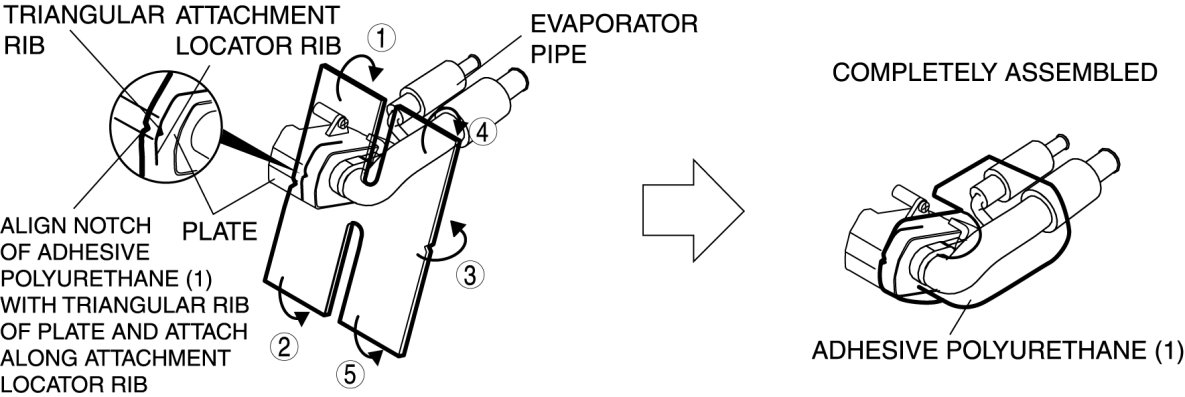 2. After assembling the evaporator pipe as shown in the figure, attach the adhesive polyurethane (2) so that it adheres around the high-pressure side of the evaporator pipe.