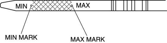 6. Remove the dipstick and verify that the oil level is between the MIN and MAX marks on the dipstick.