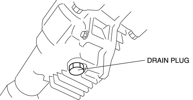 4. Remove the oil level plug with the washer and add the specified amount and type of oil through the oil level plug hole until the level reaches the bottom of the oil level plug hole.