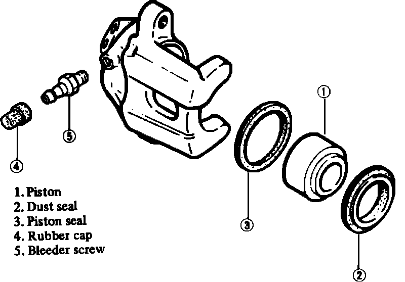 Fig. 3 Front brake caliper. 1984-85 GLC: