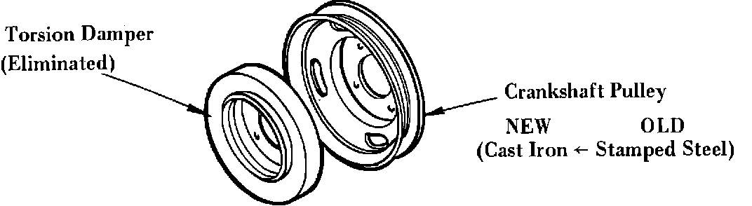 The material of the crankshaft pulley has been changed from stamped steel to cast iron since the production date of June 1983. With this change, the torsion damper has been eliminated.