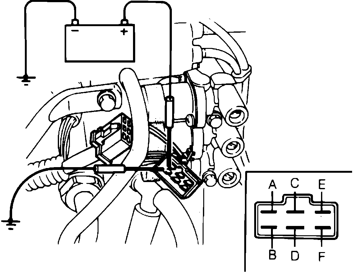 7. Apply battery power to terminal E and ground terminal F and note engine speed.