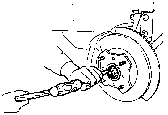NOTE: When loosening the nut, lock the hub by applying the brakes.
