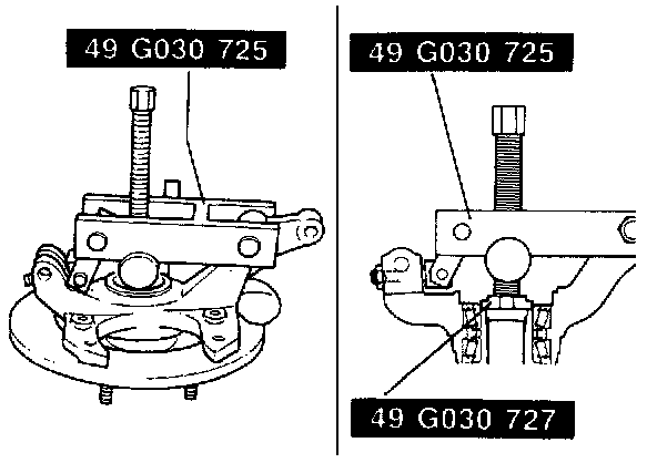 9. Using SST 49 G030 725 or equivalent, remove the wheel hub from the knuckle.